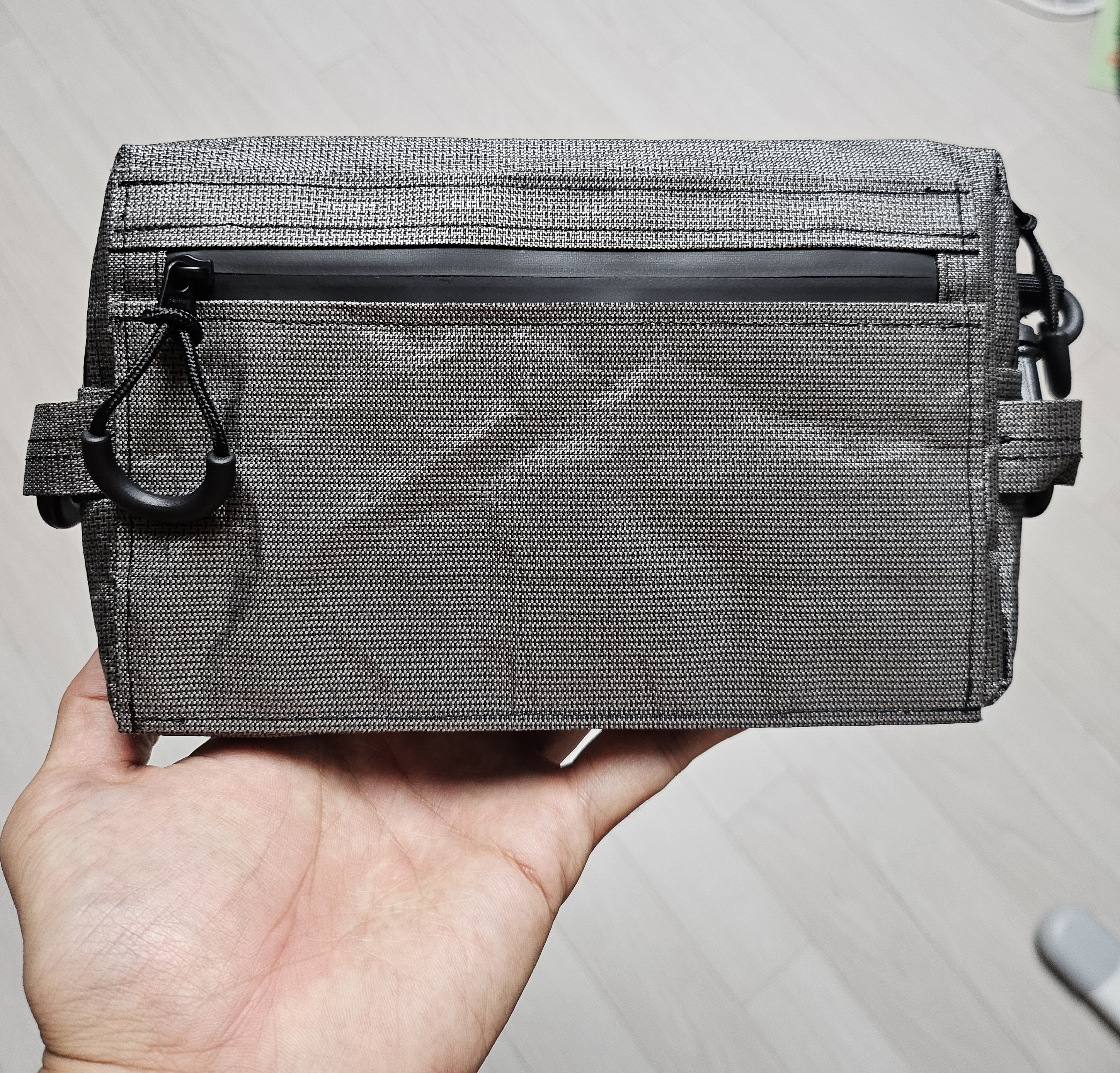 양쪽에는 지퍼 열때 손가락 걸으라고 만들어줬는데 의도치않게 가방 끈 걸이가 되었습니다.