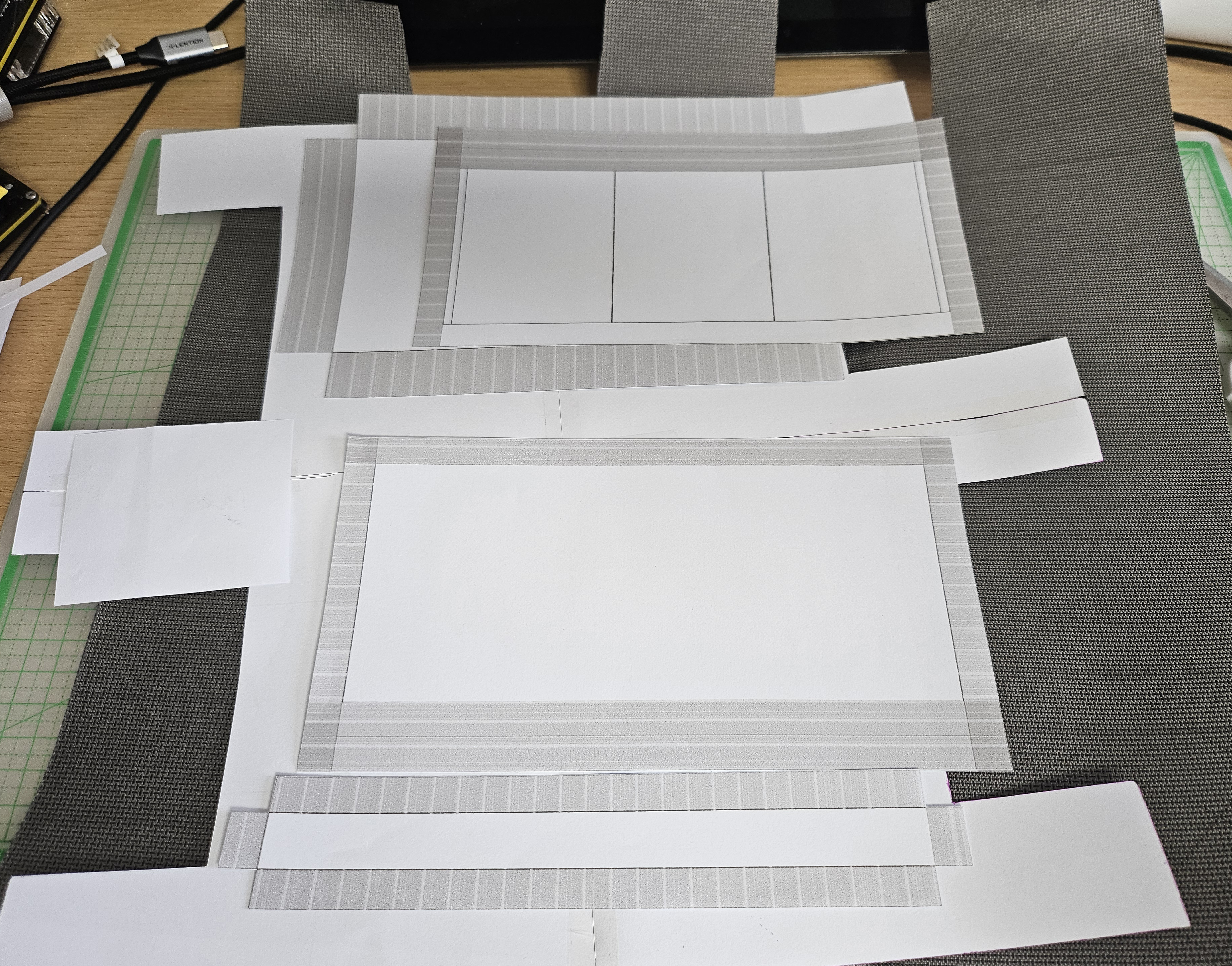 크기를 정하고 내외부를 어떻게 나눌지 고민을 하고 패턴을 프린트해서 재단을 해줍니다.