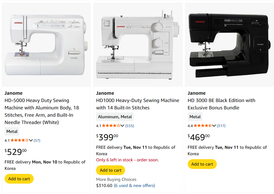 Singer, Brother, Janome, Juki 등 너무나 많았지만 예산을 30 ~ 50정도 사이로 생각중이었는데,
