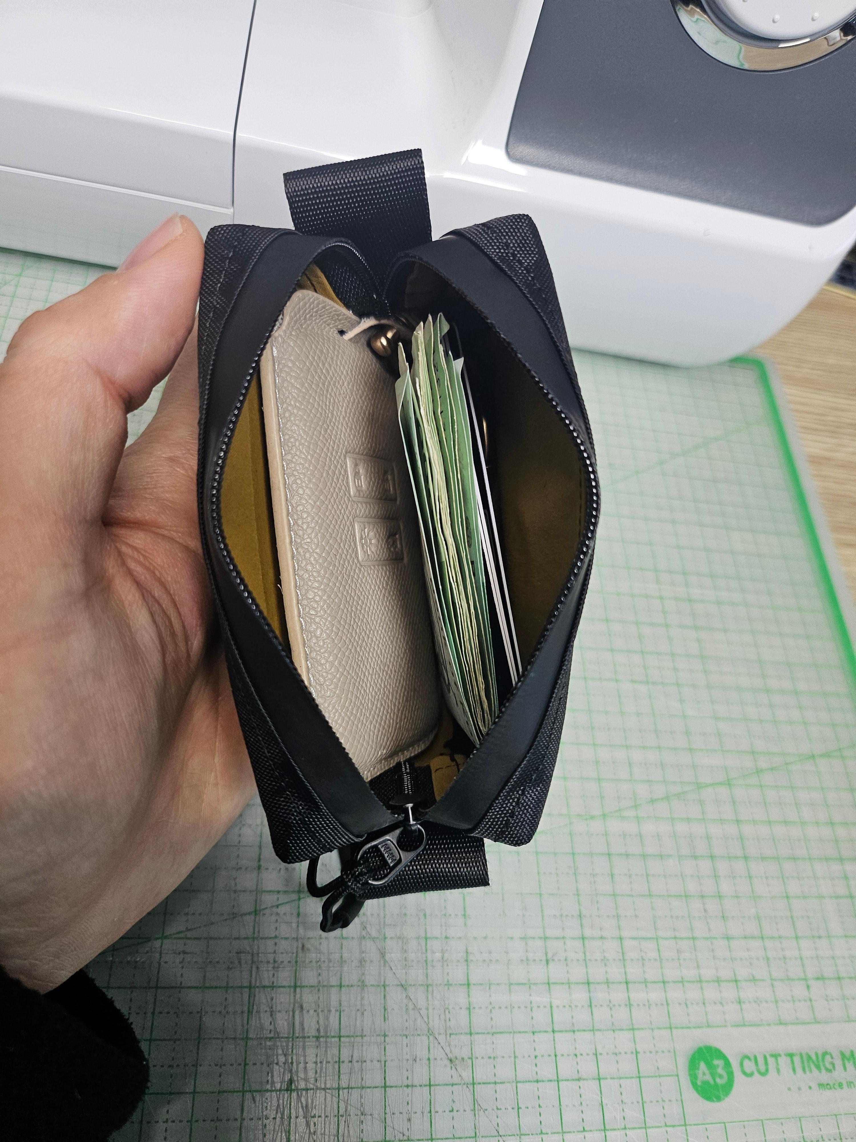 지난번에 만들었던건 카드와 현금만 넣을 정도로 얇고 작은 파우치였는데, 쓰다보니 차키가 안 들어가서 따로 들고 다니는게 좀